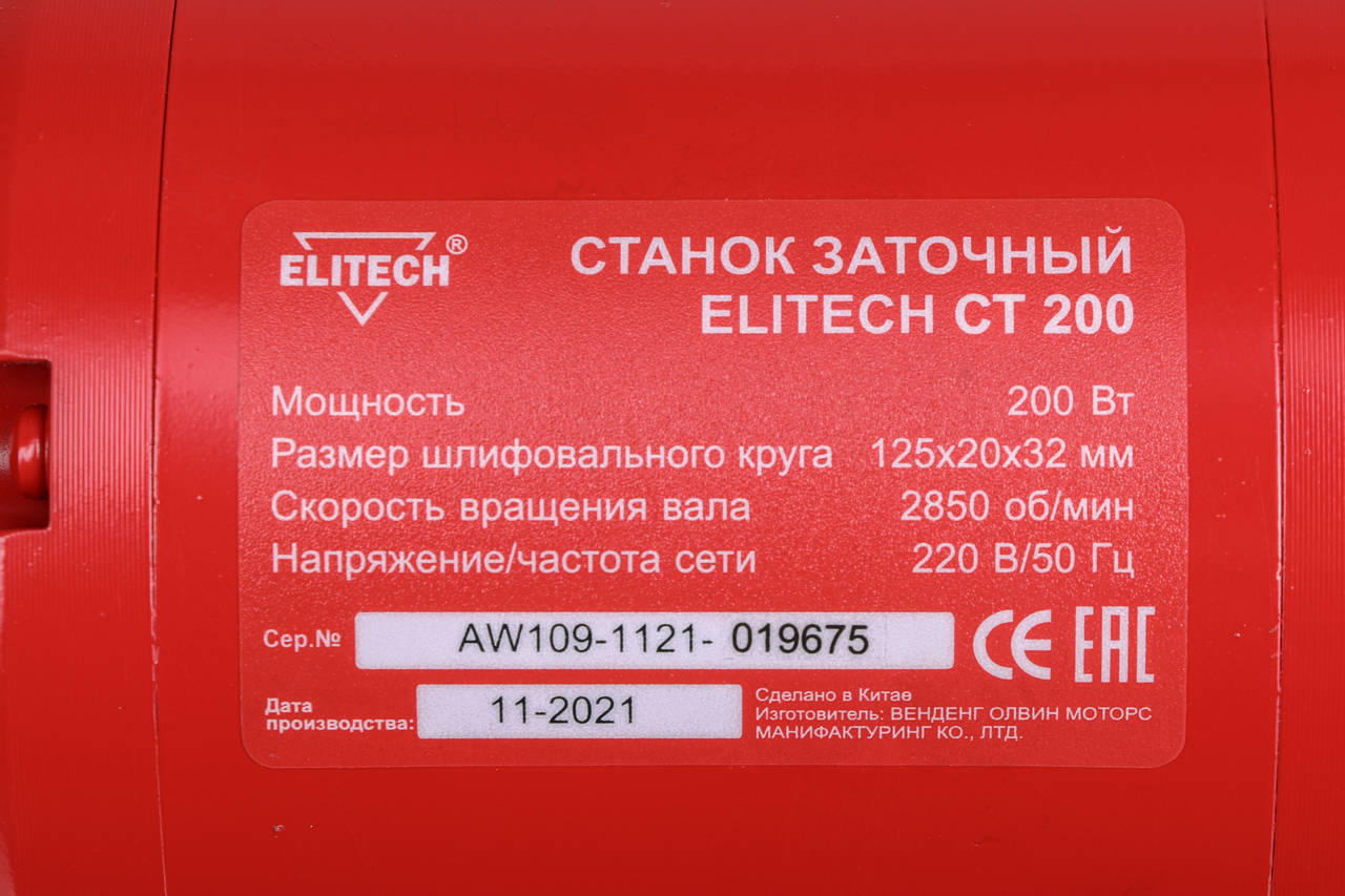 Электроточило ELITECH СТ 200 200Вт 2850об/мин d=125мм t=20мм