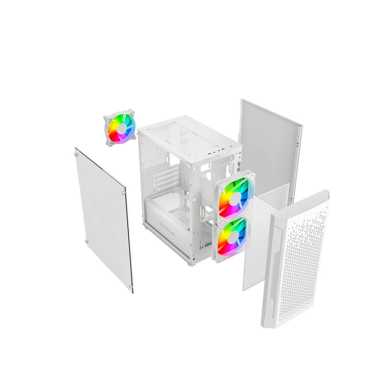 Корпус Powercase Mistral Micro Z3W Mesh LED, Tempered Glass, 2x 140mm + 1х 120mm 5-color fan, белый, mATX
