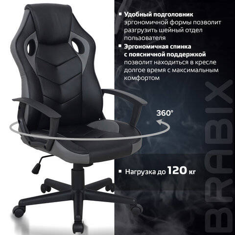 Игровое кресло BRABIX Кресло компьютерное "Fighter GM-008", экокожа, черное/серое, 532507