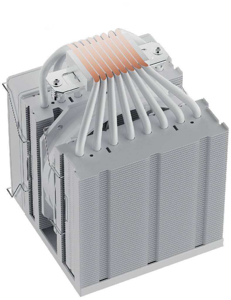 Кулер upHere UE2TC8 White ARGB / 8HPx6mm, 280W TDP, dual tower, 2x120mm ARGB fans, 600-1650RPM, 68 CFM, 25dBA / UE2TC8