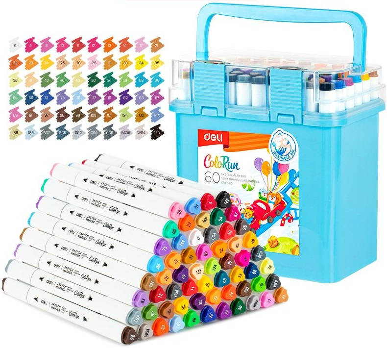 Маркер DELI Набор маркеров для скетчинга EC187-60 ColoRun 11мм 150мм трехгр. двойной пиш. наконечник 1-5мм 60цв. ассорти пластиковая коробка