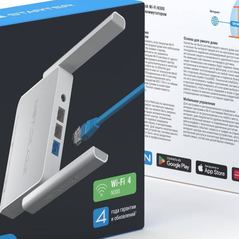 Маршрутизатор NETCRAZE (Keenetic) Интернет-центр с Mesh Wi-Fi N300 и 3-портовым Smart-коммутатором