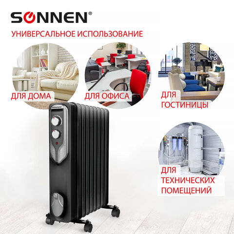 Обогреватель SONNEN масляный DFN-09BL, 2000 Вт, 9 секций, черный, 455311