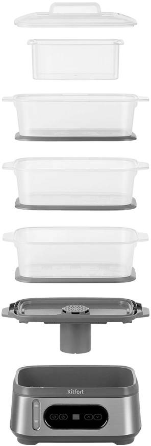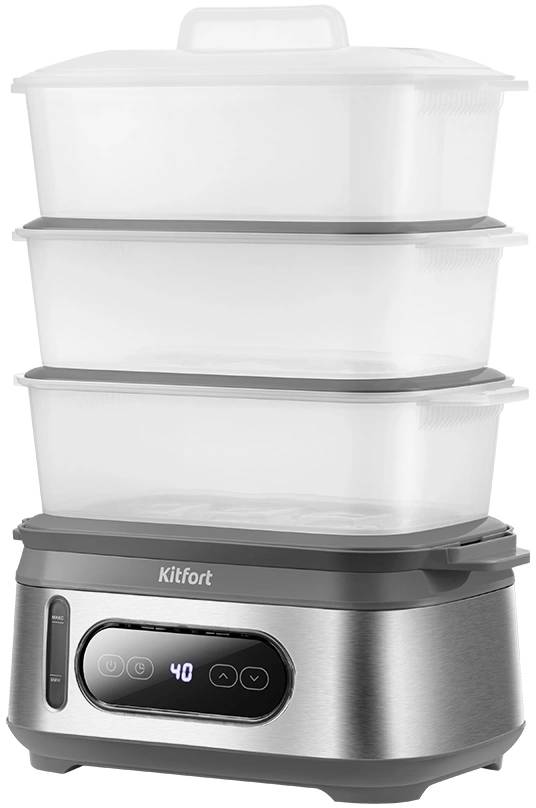 Пароварка KITFORT КТ-6280 3ярус. 1050Вт серый/серебристый