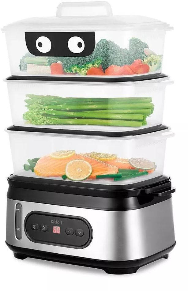 Пароварка KITFORT КТ-4082 3ярус. 800Вт серебристый