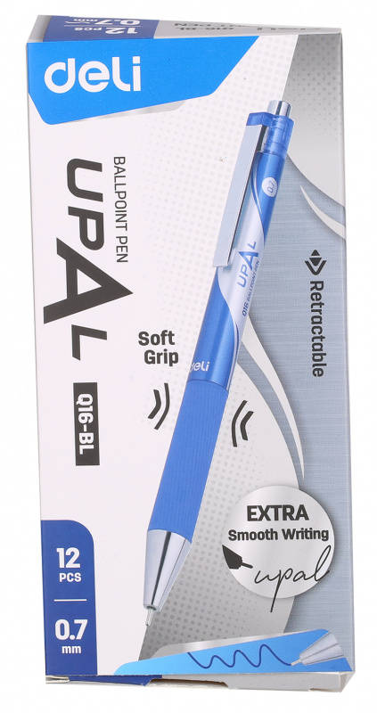 Ручка шариковая DELI EQ16-BL Upal авт. 0.7мм резин. манжета синий металлик синие чернила