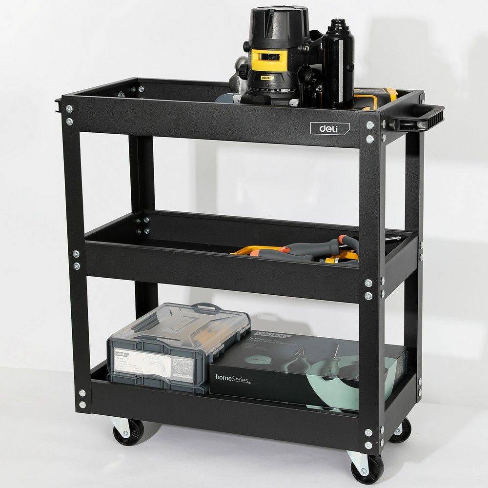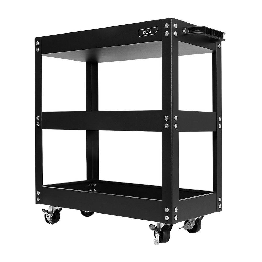 Стремянка DELI Тележка инструментальная трехсекционная на колесах DL433013 510x260x580мм, до 90кг, толщина полки 0,6мм, толщина стойки 1мм