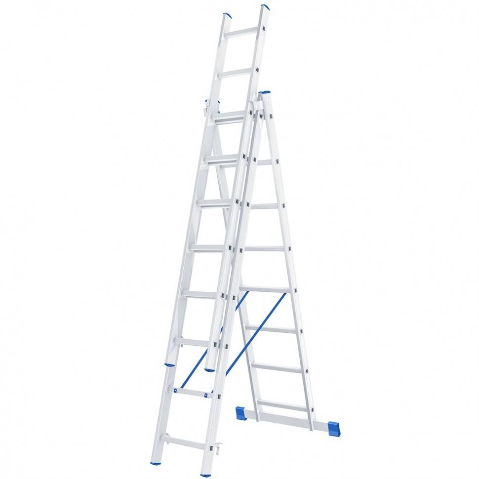 Стремянка СИБРТЕХ Лестница, 3 х 8 ступеней, алюминиевая, трехсекционная, Россия [97818]