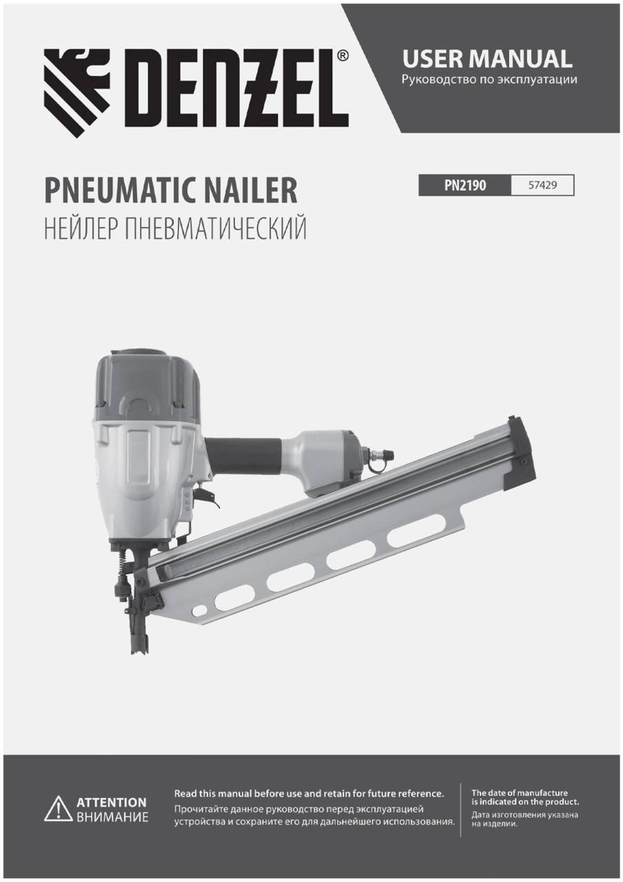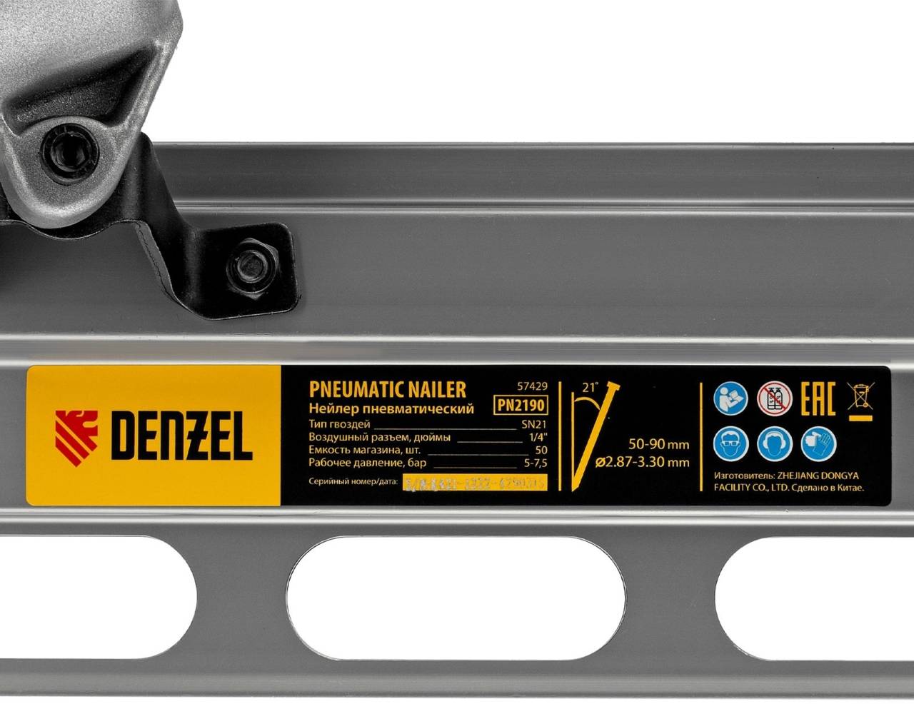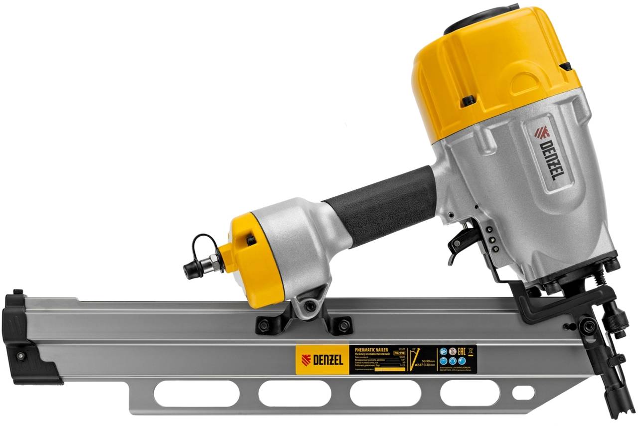 Строительный пневмопистолет DENZEL Пистолет гвоздезабивной PN2190 серый/желтый