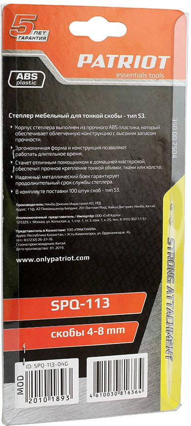 Строительный степлер Patriot Степлер ручной SPQ-113 скобы тип 53