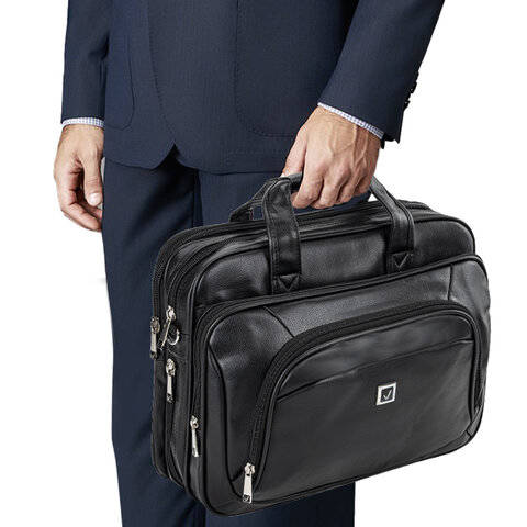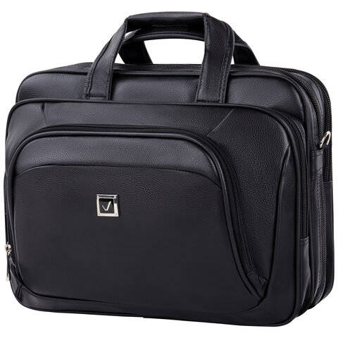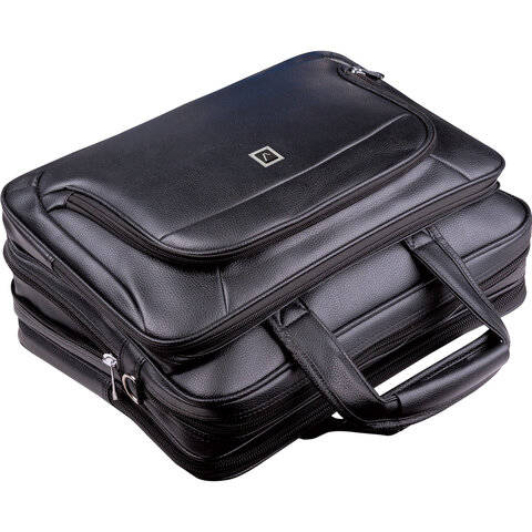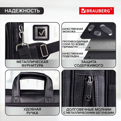 Сумка Brauberg портфель CARBON с отделением для ноутбука 15-16", 2 отделения, экокожа, черная, 32х41х12 см, 240399