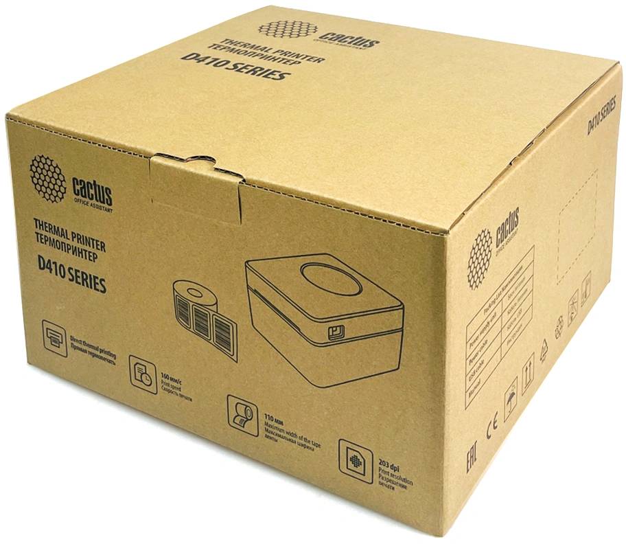 Термопринтер CACTUS CS-TP-D410U-W 203dpi 160мм/с/USB для печ.этик. белый