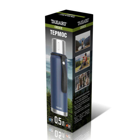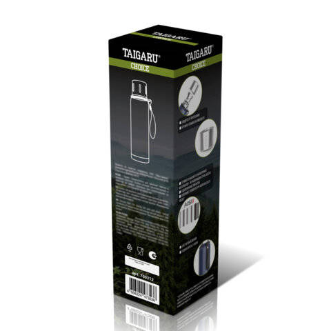 Крышка термоса TAIGARU может быть использована как кружка - она сделана из нержавеющей стали с обеих сторон, а на внешней стороне имеет выемки, которые не только добавляют в дизайн изделия стиль, но и способствуют более комфортному открытию термоса. Термос оснащен глухой стальной винтовой пробкой, помогающей сохранять температуру напитка как можно дольше. Корпус имеет порошковое покрытие темно-синего цвета, которое не только обеспечивает термосу стильный дизайн, но и препятствует появлению мелких царапин при долгосрочном использовании. Термос TAIGARU снабжен удобным ремешком для удобной переноски.