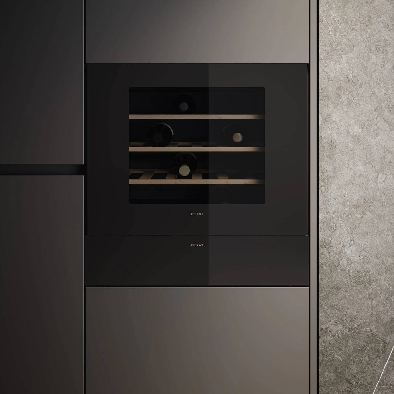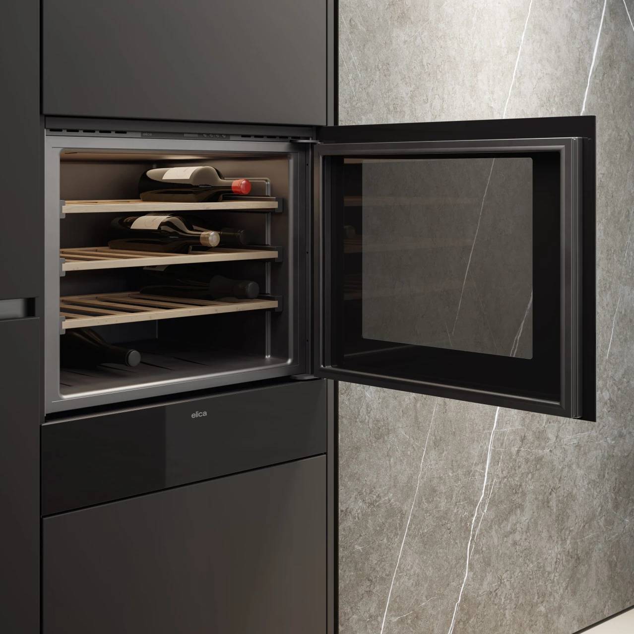 Встраиваемый винный шкаф ELICA VERITAS BI24 BL оснащен полками с телескопическими направляющими. Стандартная загрузка винного шкафа - 24 бутылки.